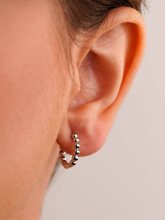 این گوشواره حلقهای توپی، با دانههای کوچک و براقش حالوهوای یک جزئیات ظریف اما خوشچشم را به گوش میدهد.