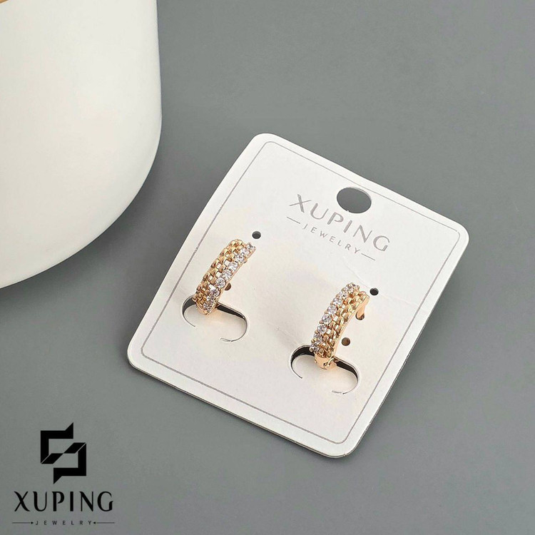 این مدل از آن حلقههایی است که نور را اسیر خودش میکند. یک ردیف نگین و دو ردیف تراش دار با چیدمانی منظم کنار هم نشستهاند و یک نوار درخشان ساختهاند که روی گوش مثل یک خط روشنِ شیک جلوه میکند. بدنهی مسی با روکش طلای ۱۸ عیار کیفیتش را محکم نگه داشته و ساخت ژوپینگ، امضای ظرافت این کار است. تولید چین، با دوام و ظاهر برازنده.