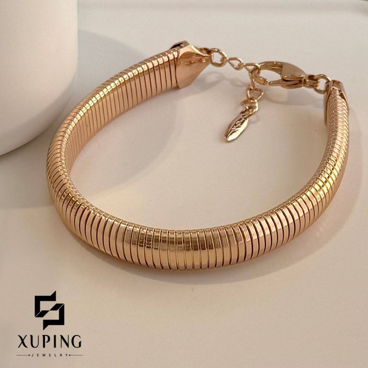 دستبند فنری ژوپینگ با طراحی مدرن و انعطافپذیر خود، یکی از اسپرتترین و شیکترین مدلهای این برند است. سطح صیقلی و آبکاری طلای ۱۸ عیار، جلوهای براق و یکدست ایجاد کرده که روی دست بسیار چشمگیر مینشیند. ساختار مسی مقاوم، دوام بالا و ماندگاری رنگ را تضمین میکند. این مدل انتخابی ایدهآل برای استفاده روزانه و استایلهای نیمهمجلسـی است و با قیمت مناسب ارائه میشود.
